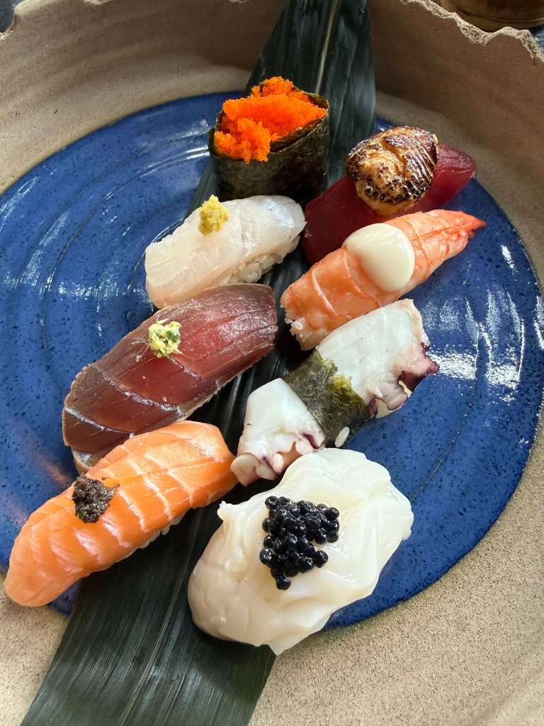 Na sequência, pedimos a régua de niguiris especiais, que facilmente entrou para a lista dos meus favoritos. A seleção e o frescor dos ingredientes chamaram atenção, especialmente o nigiri de vieira e o de atum com foie gras.